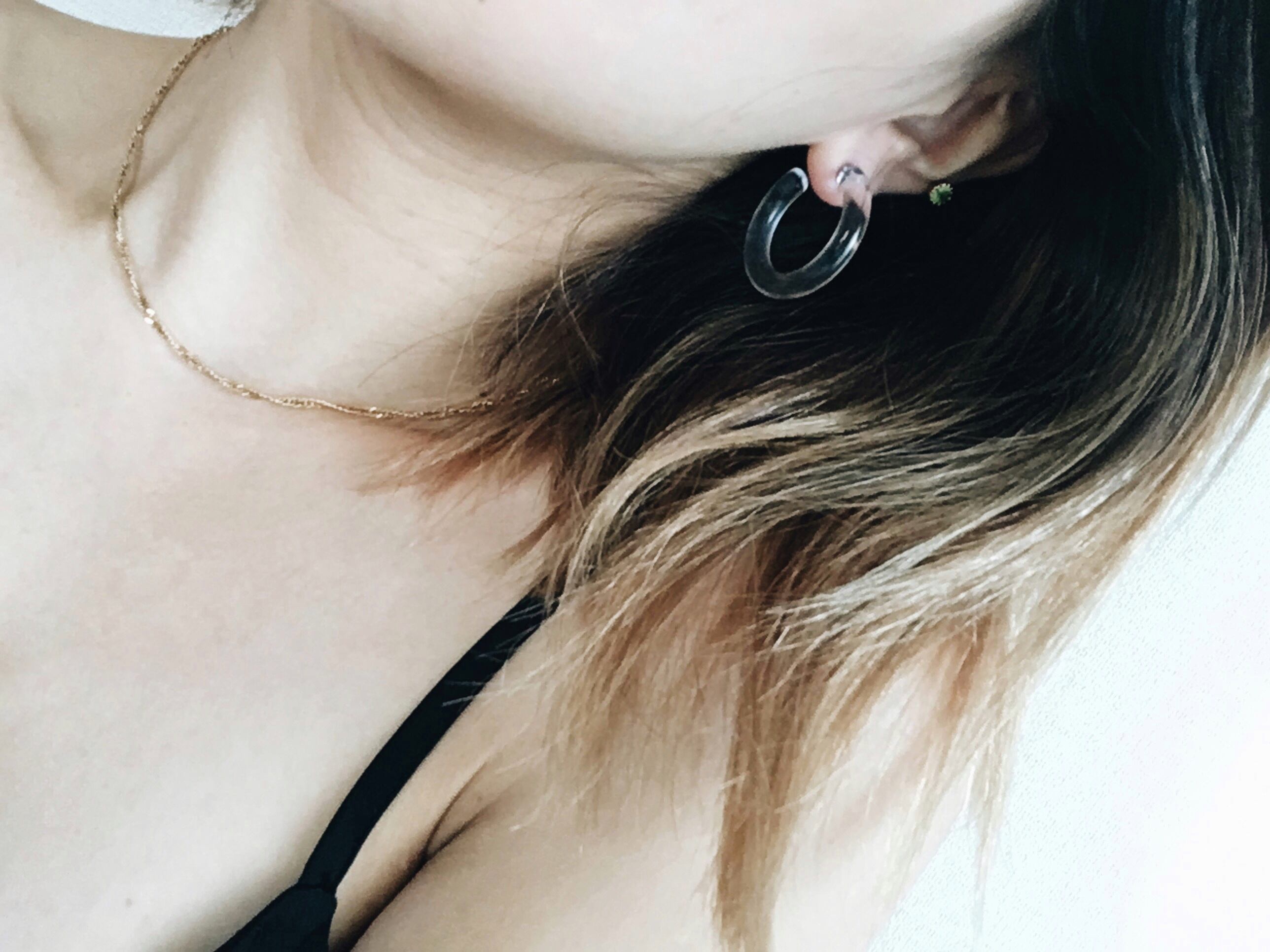 今年トレンドのクリアフープのピアス ファッションのポイントに。 ※ピアス金具変更不可 〈size〉 全長 3cm 〈素材〉 アクリル メッキ金具