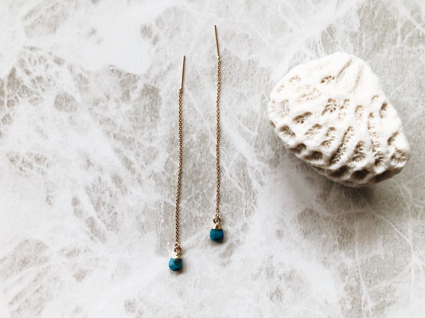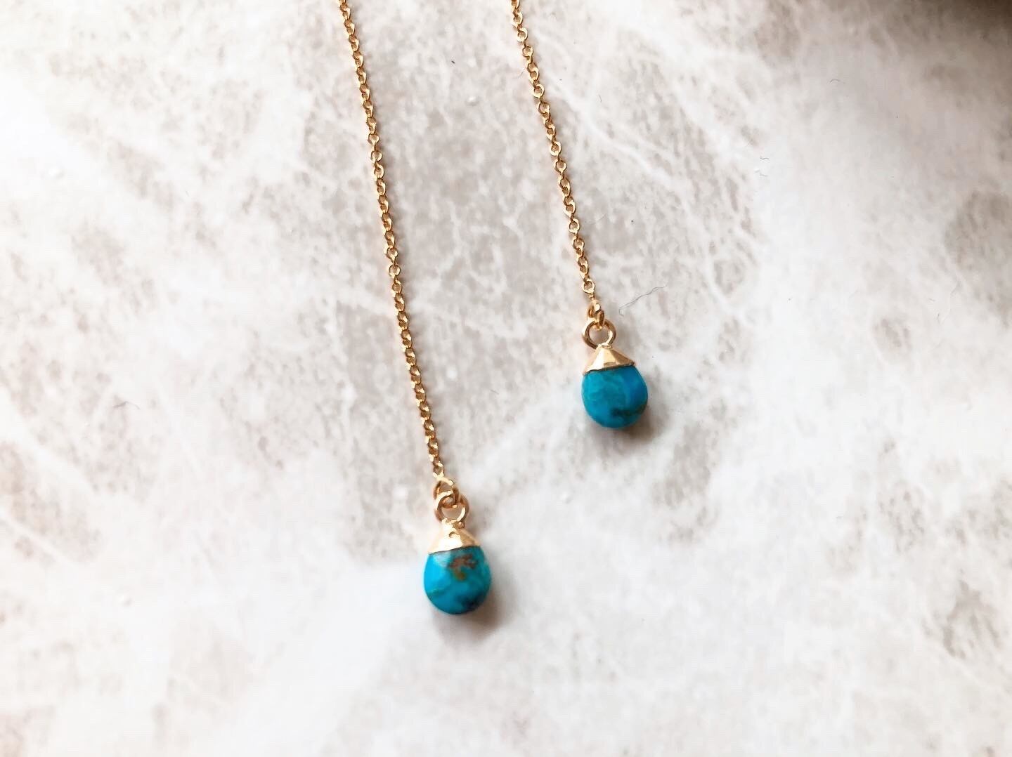 18Kコーティングされている天然石ターコイズを使用したアメリカンピアス