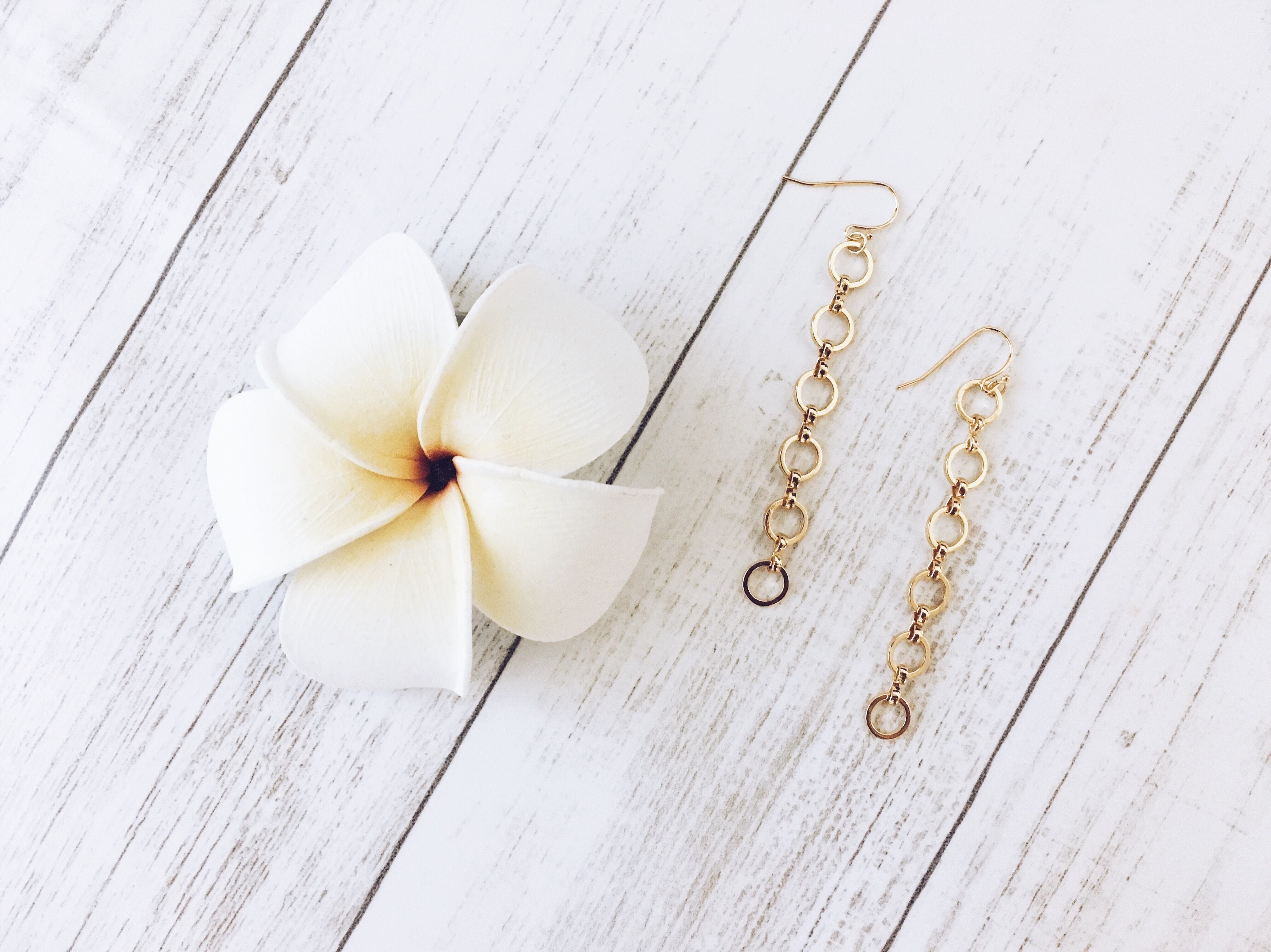 大きめのサークルをいくつにもあしらったチェーンピアス。